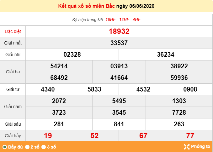 - Giải đặc biệt ngày 6/6/2025 về 18932, tổng 23, tương đương với 3, như vậy, ngày 7/6/2025, giải đặc biệt sẽ về tổng 0